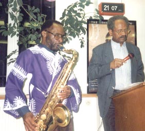 Emanuel’s first jazz-and-blues haiku concert, 8 November 1995, here with saxophonist Chansse Evanns at the American Library in Paris.
